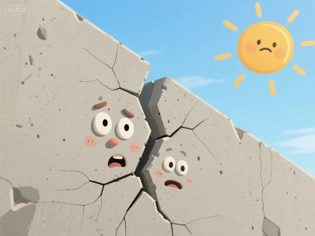 看到热的混凝土,有些施工现场直接拿水管喷冷水降温。听起来很解暑?不可不可!混凝土表面温度高,冷水突然泼上去,内部热胀冷缩,混凝土直接炸裂!