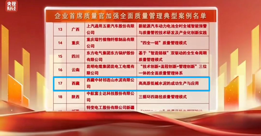 09、西藏中材祁连山入选央视“2025年企业首席质量官加强全面质量管理典型案例”