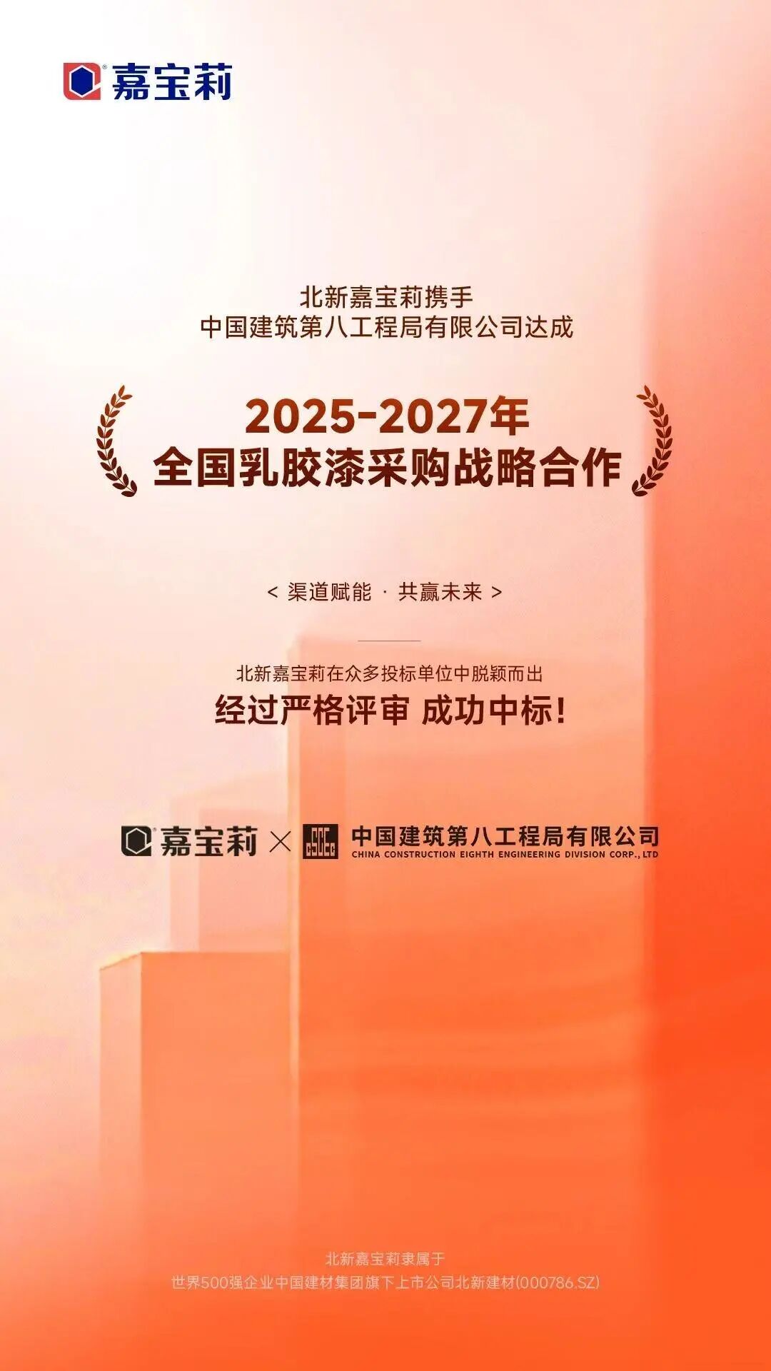 近期,北新嘉宝莉中标中国建筑装饰集团有限公司、中国建筑第八工程局有限公司2025—2027年全国乳胶漆采购。北新嘉宝莉从众多竞争者中脱颖而出,接连斩获头部客户,体现了其强大的综合实力与品牌影响力。