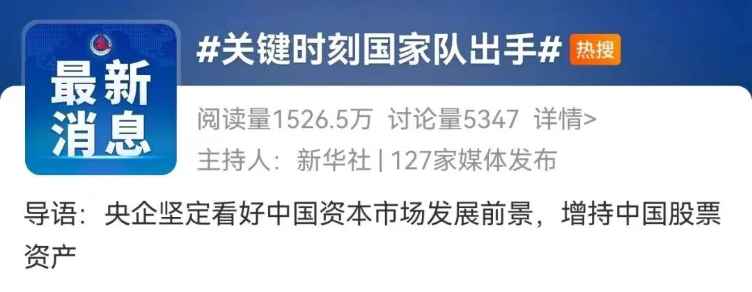 2、“央企十大热搜” #关键时刻国家队出手#  #国家队相继宣布增持#