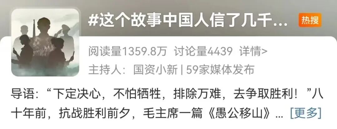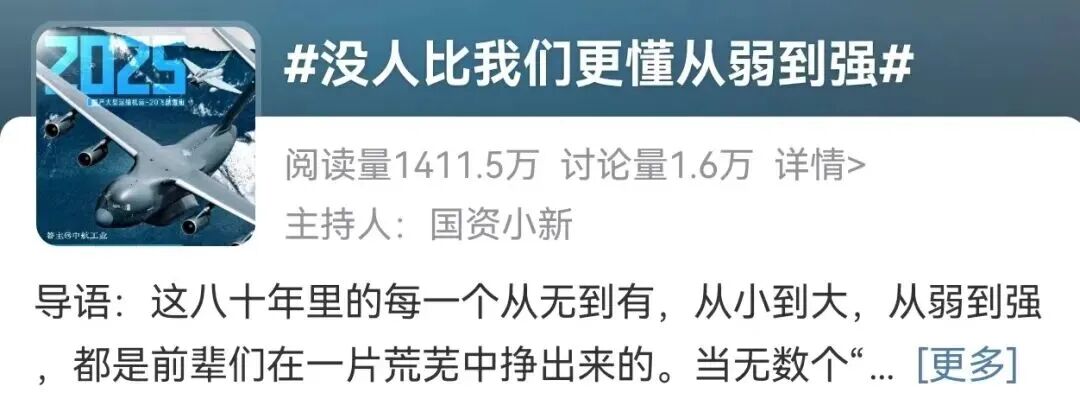 3、“央企十大热搜” #我想对八十年前的前辈说#  #没人比我们更懂从弱到强#这个故事中国人信了几千年#